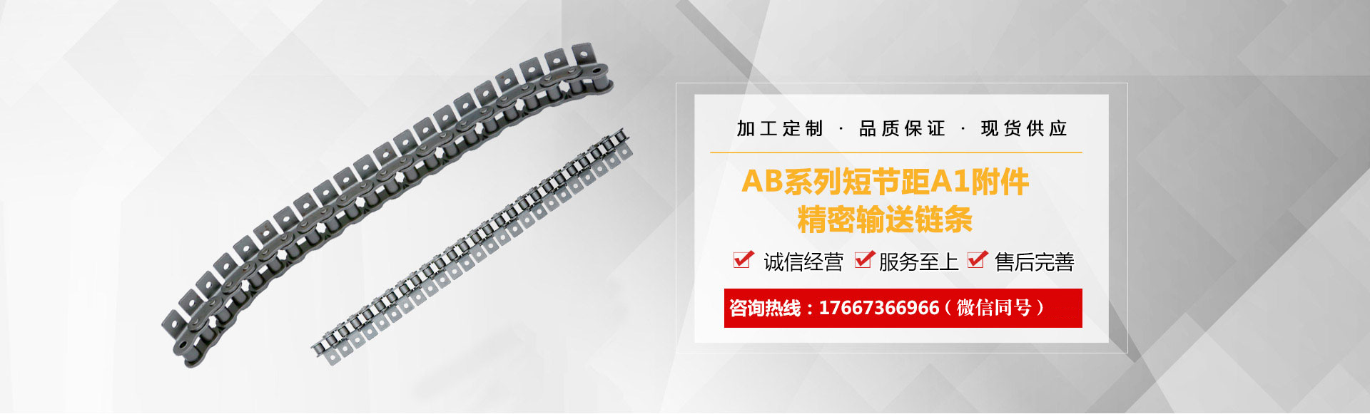 1、鏈條產(chǎn)品有各種不銹鋼、碳鋼輸送鏈條、雙節(jié)距輸送鏈條、空心銷軸鏈條、不銹鋼塑料平頂鏈、不銹鋼精密滾子鏈、特殊工礦輸送鏈、耐高溫輸送鏈條、非標(biāo)鏈條、彎板非標(biāo)鏈條、大節(jié)距輸送鏈條、各種鏈條用滾子(材質(zhì)碳鋼、不銹鋼)等。